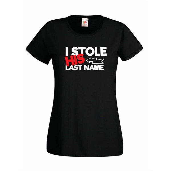 Dames uitvoering heeft de opdruk: I STOLE HIS LASTNAME