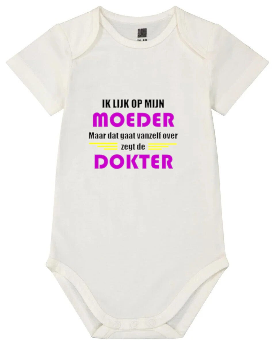 Deze grappige romper met opdruk is verkrijgbaar in twee uitvoeringen;